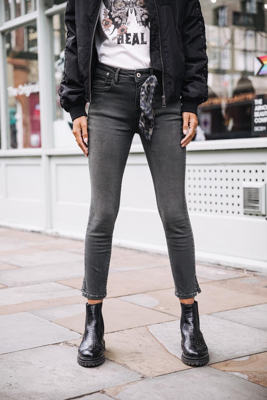 غايل تأسر قلبي: غايل هو بنطال الجينز الضيق الملون المثالي لقضاء أمسية رائعة مع الأصدقاء! يتميز بخصر عالٍ وطول ٧/٨ بوصة، مما يُضفي لمسةً مميزة على إطلالتك.