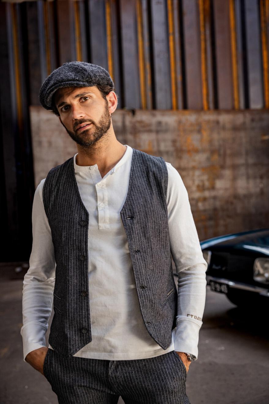 لمسة بريطانية: الجاكيت هو لمسة أنيقة تليق بك! جورجيو مصبوغ باللون الرمادي مع خطوط بيضاء رقيقة. مثالي لإطلالة متكاملة مع بنطال مطابق وتيشيرت بأكمام طويلة تحته. لمسة لندنية مضمونة!