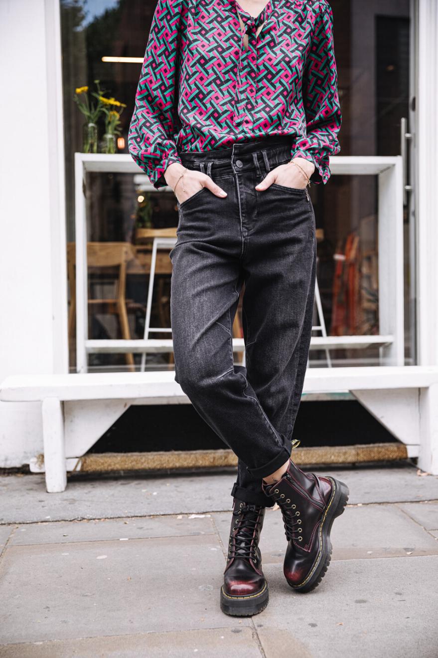 إطلالة صبيانية: إذا كنتِ ترغبين في تغيير عاداتكِ بقصة جينز جديدة، فاختاري موديل لارا! موديل عملي: قصة واسعة، وخصر مرتفع، وشكل مميز. في إصدار بوسيلا، يتميز بمظهر كلاسيكي مع قماش أسود باهت. رائع جدًا!