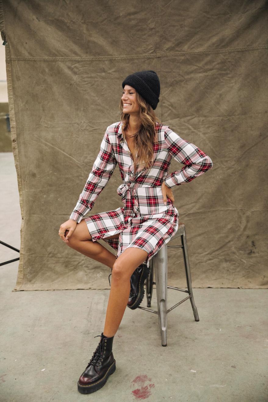 فريد كالعادة: قميصنا التقليدي ذو النقوش المربعة يطول ليُبرز ساقيكِ. قماش انسيابي، بخصر منسدل، مع حزام فيونكة مدمج يندمج مع الفستان ويمنحه مظهرًا أصليًا وفريدًا.